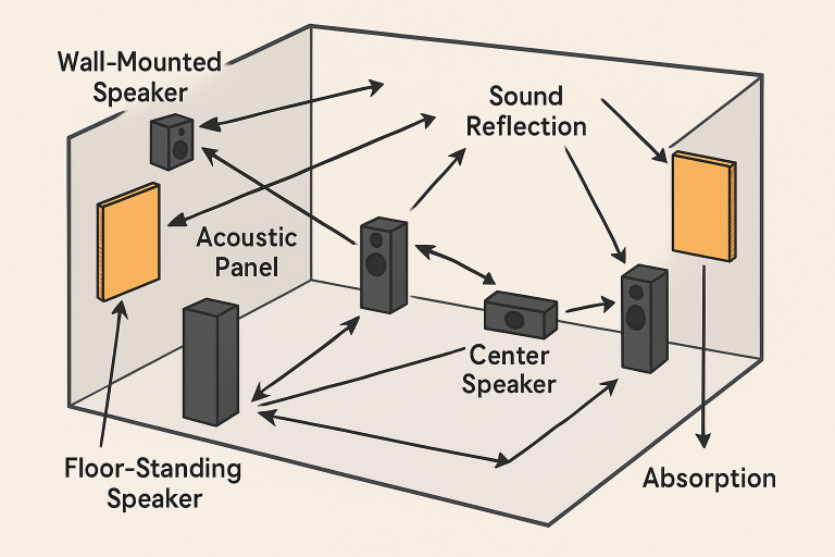Speaker placement has a significant impact on both sound distribution and listener immersion. Ensuring speakers are at ear level and maintaining a consistent distance from the main seating areas improves stereo imaging and prevents localization issues. Avoiding proximity to highly reflective surfaces, such as large windows or bare walls, helps prevent disruptive echoes and maintains tonal accuracy. In larger rooms, consider adding additional speakers to avoid audio dropouts or inconsistent sound pressure levels.