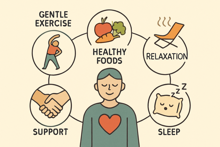 - Incorporate gentle exercise to alleviate stiffness and improve mood.